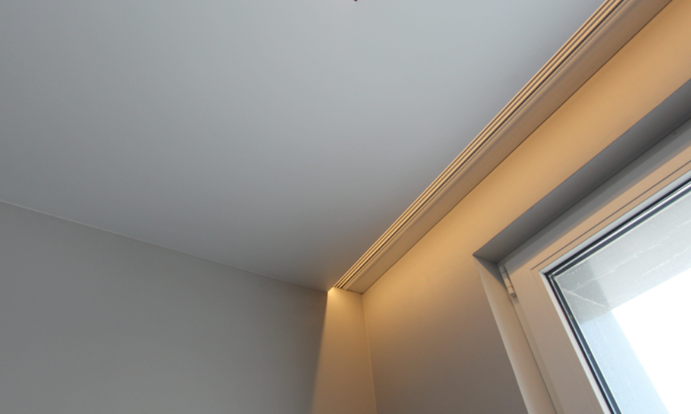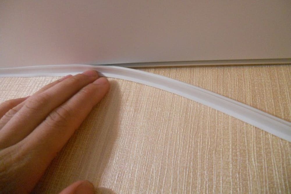 Потолок плотно примыкает к стене, оставляя едва заметную декоративную тень в месте стыка