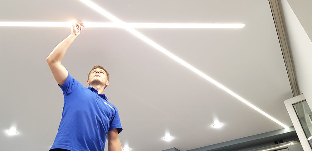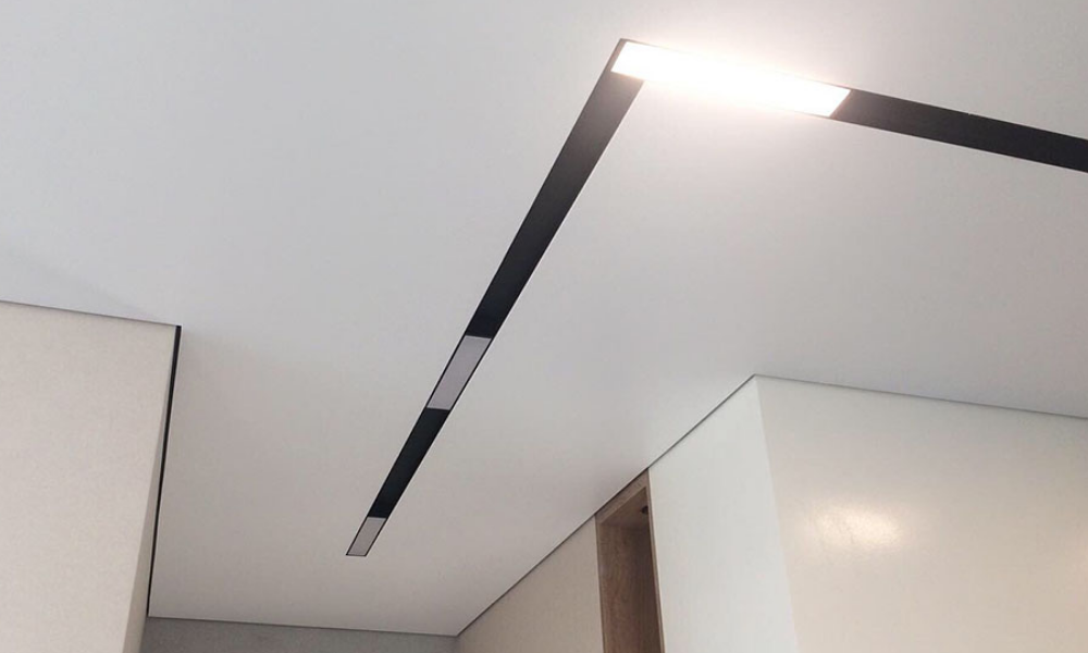 Нишевые световые системы SLOTT без маскировочной ленты подходят для любых натяжных потолков (ПВХ и тканевых)