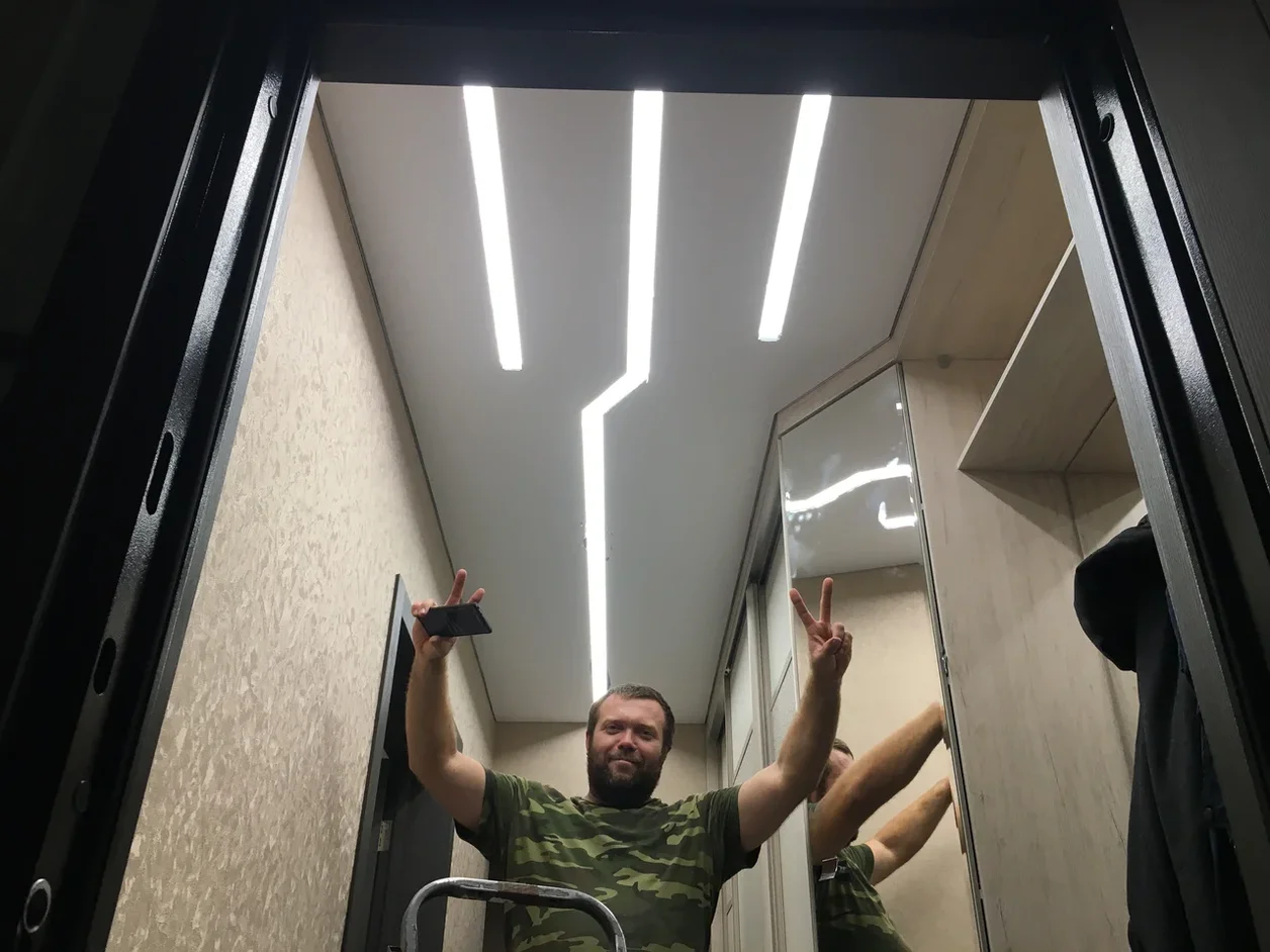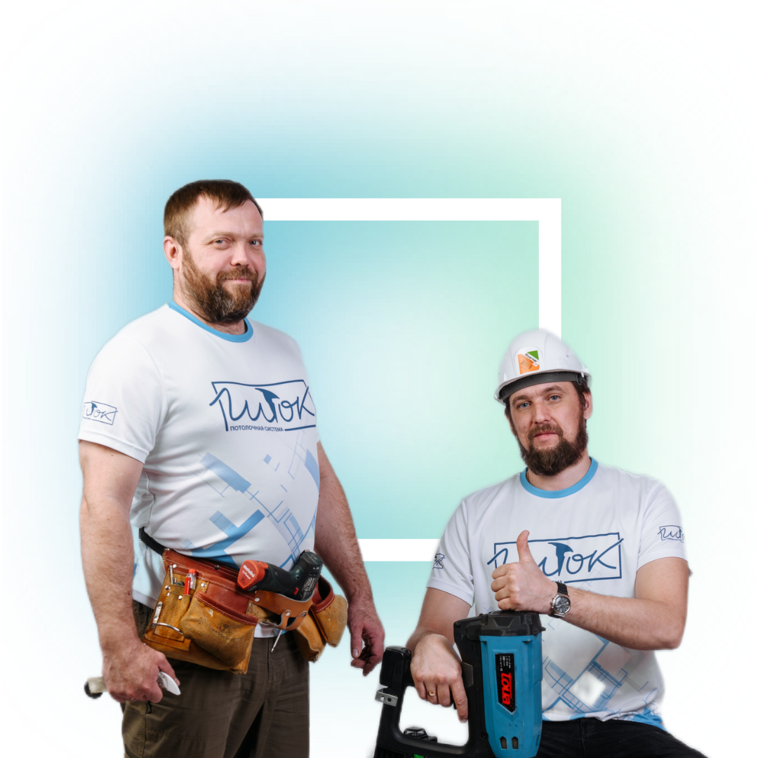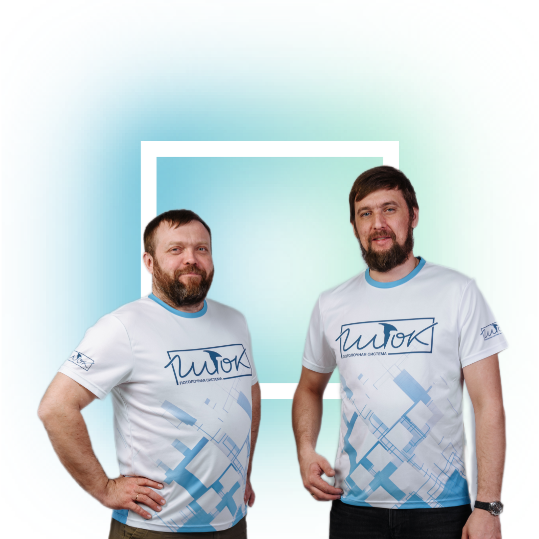 На фото рядом со мной Максим. С 2003 года мы занимаемся установкой натяжных потолков.