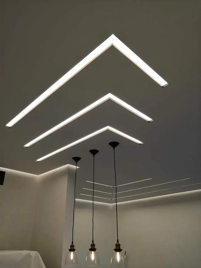 Нишевые световые системы SLOTT без маскировочной ленты подходят для любых натяжных потолков (ПВХ и тканевых)