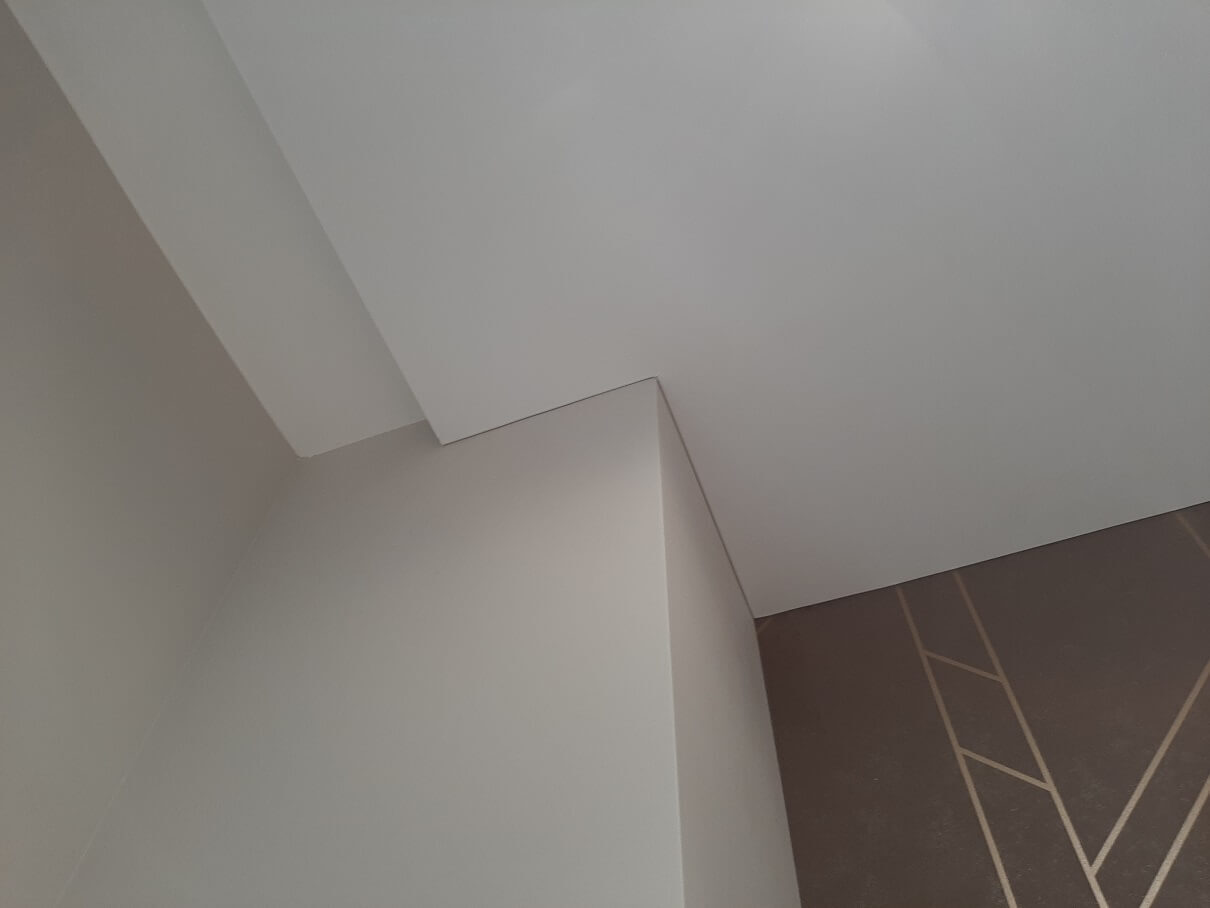 Потолок плотно примыкает к стене, оставляя едва заметную декоративную тень в месте стыка